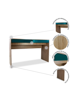 Con una superficie firme y espaciosa y dos cajones amplios centrados, la definida en el elemento ideal para sumar a cualquier tipo de espacio una dosis perfecta de comodidad y buen diseño.
