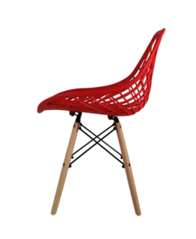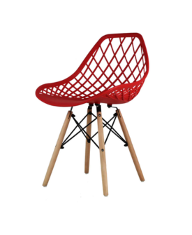Base de cuatro postes de madera unidos por medio de varillas entrecruzadas, un asiento de polipropileno con un toque en asiento y respaldo de rombos orgánicos en forma de torbellino, lo adaptará en el elemento ideal para sumar a cualquier tipo de espacio una dosis Perfecta comodidad y buen