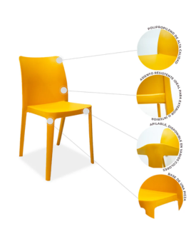 - Asiento: Plástico rígido de polipropileno con protección