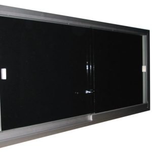 Vitrina con pizarrón ranurado y marco de aluminio.