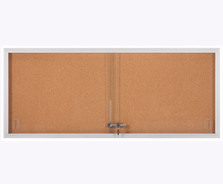 Vitrina con pizarrón de corcho y marco de aluminio.